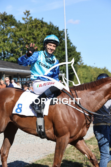- Beskrivelse: Giovanni Torkdahl med Lorenzo Putzulu vinder dagens 5 galopløb. SPAR NORD ARENA AALBORG CHAMPION STAKES Spar Nord Arena-Aalborg Væddeløbsbane d.23/8-2025. Fotograf: Hesselborg Foto