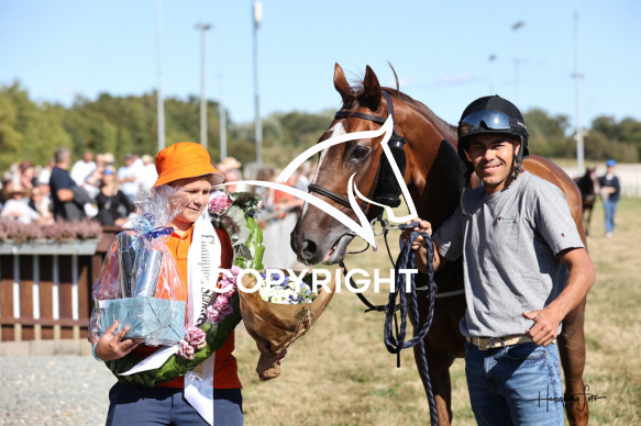 - Beskrivelse: Giovanni Torkdahl med Lorenzo Putzulu vinder dagens 5 galopløb. SPAR NORD ARENA AALBORG CHAMPION STAKES Spar Nord Arena-Aalborg Væddeløbsbane d.23/8-2025. Fotograf: Hesselborg Foto