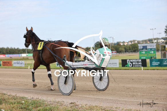 - Beskrivelse: R K STAR med Jeppe Juel vinder dagens 1 løb. Spar Nord Arena-Aalborg Væddeløbsbane d. 27/8-2025. Fotograf: Hesselborg Foto