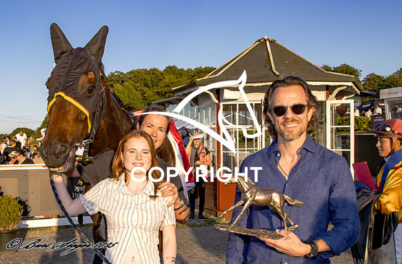- Beskrivelse: NEWTON med Elin Hedeman 3. løbs vinder på Klampenborg d. 2024-08-30. Photo: Burt Seeger.