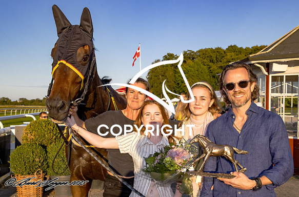 - Beskrivelse: NEWTON med Elin Hedeman 3. løbs vinder på Klampenborg d. 2024-08-30. Photo: Burt Seeger.