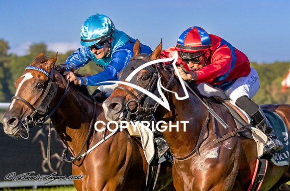 - Billede Beskrivelse: KING OF TEN med Elione Chaves 2. løbs vinder på Klampenborg d. 2024-08-30. Photo: Burt Seeger.