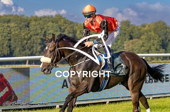 - Beskrivelse: CLASSIC BLAZE med Nicolaj Stott 1. løbs vinder på Klampenborg d. 2024-08-30. Photo: Burt Seeger.