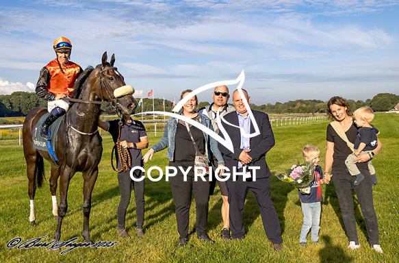 - Beskrivelse: CLASSIC BLAZE med Nicolaj Stott 1. løbs vinder på Klampenborg d. 2024-08-30. Photo: Burt Seeger.
