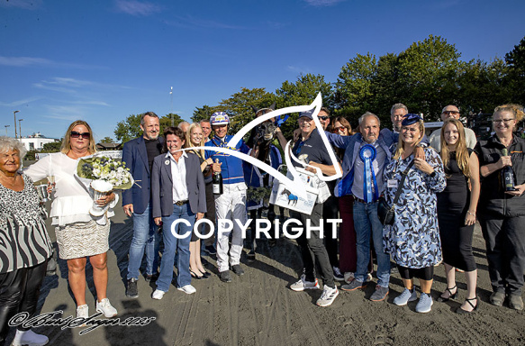 - Billede Beskrivelse: KREADLYS LEW med Joakim Lövgren 11. løbs vinder, af Dansk Trav Derby 2025, på Charlottenlund d. 2025-08-31. Photo: Burt Seeger.