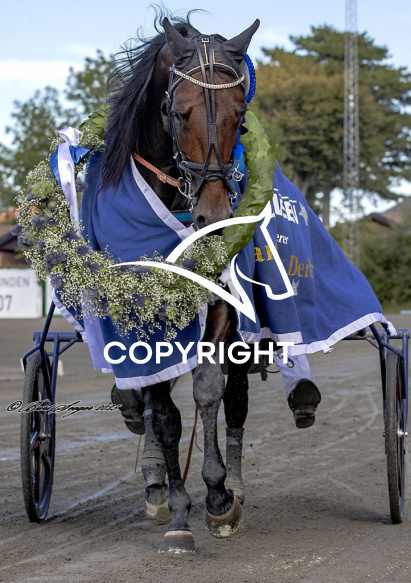 - Beskrivelse: KREADLYS LEW med Joakim Lövgren 11. løbs vinder, af Dansk Trav Derby 2025, på Charlottenlund d. 2025-08-31. Photo: Burt Seeger.