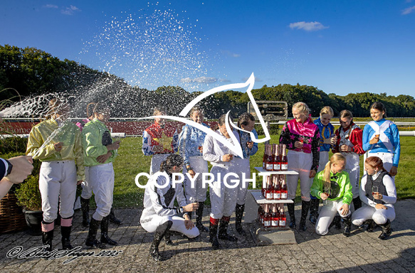 - Beskrivelse: PERSIAN MAGIC med Laura Vestergaard 6. løbs vinder af Champagneløbet 2025, på Klampenborg d. 2024-09-06. Photo: Burt Seeger.