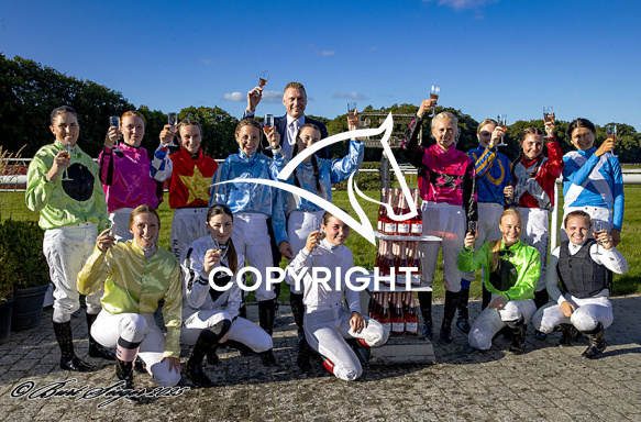 - Beskrivelse: PERSIAN MAGIC med Laura Vestergaard 6. løbs vinder af Champagneløbet 2025, på Klampenborg d. 2024-09-06. Photo: Burt Seeger.