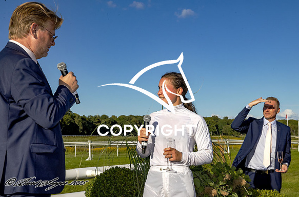 - Billede Beskrivelse: PERSIAN MAGIC med Laura Vestergaard 6. løbs vinder af Champagneløbet 2025, på Klampenborg d. 2024-09-06. Photo: Burt Seeger.