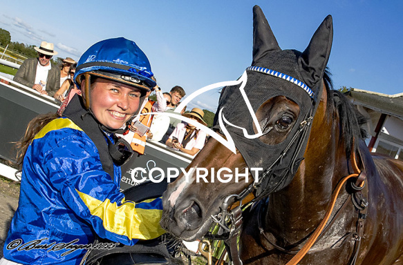 - Billede Beskrivelse: PERSIAN MAGIC med Laura Vestergaard 6. løbs vinder af Champagneløbet 2025, på Klampenborg d. 2024-09-06. Photo: Burt Seeger.