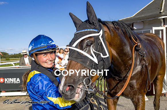 - Beskrivelse: PERSIAN MAGIC med Laura Vestergaard 6. løbs vinder af Champagneløbet 2025, på Klampenborg d. 2024-09-06. Photo: Burt Seeger.