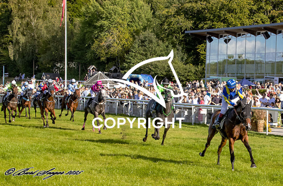 - Billede Beskrivelse: PERSIAN MAGIC med Laura Vestergaard 6. løbs vinder af Champagneløbet 2025, på Klampenborg d. 2024-09-06. Photo: Burt Seeger.