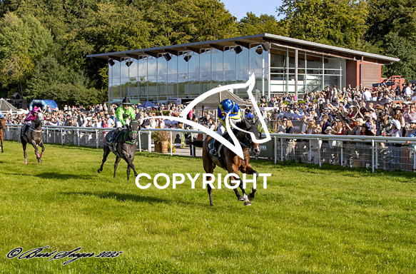 - Billede Beskrivelse: PERSIAN MAGIC med Laura Vestergaard 6. løbs vinder af Champagneløbet 2025, på Klampenborg d. 2024-09-06. Photo: Burt Seeger.