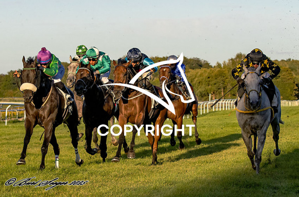 - Beskrivelse: SIR MACKEN MED EVELINA R¨ONNLUND 9. løbs vinder på Klampenborg d. 2024-09-06. Photo: Burt Seeger.