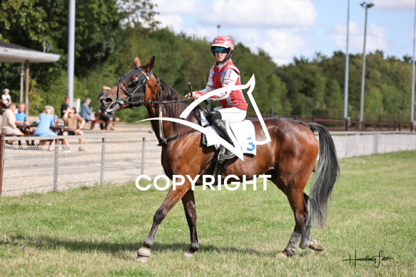 - Beskrivelse: JABADABADOO med Michelle Mønster vinder dagens 2 løb. DM for Monteryttere - Formløb 1.20 Spar Nord Arena-Aalborg Væddeløbsbane d. 7/9-2025. Fotograf: Hesselborg Foto