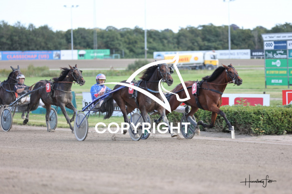 - Beskrivelse: JOLLY LIFETIME med Pauli Andersen vinder dagens 3 løb. Amerikanerløb Spar Nord Arena-Aalborg Væddeløbsbane d. 7/9-2025. Fotograf: Hesselborg Foto