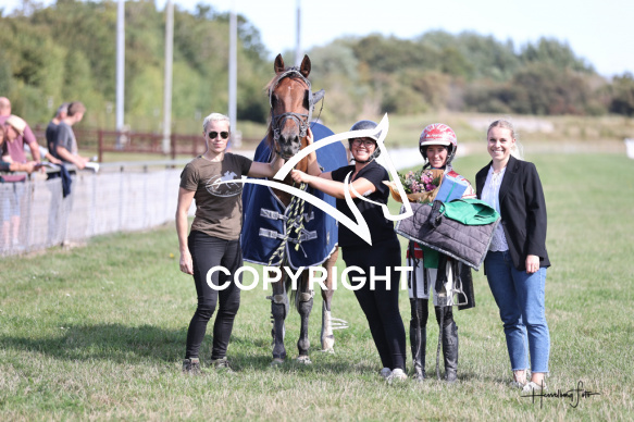 - Beskrivelse: FLASH DE BUCY med Michelle Mønster vinder dagens 4 løb. DM for Monteryttere - Formløb 1.18 Spar Nord Arena-Aalborg Væddeløbsbane d. 7/9-2025. Fotograf: Hesselborg Foto
