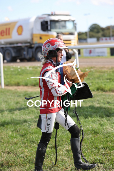 - Beskrivelse: FLASH DE BUCY med Michelle Mønster vinder dagens 4 løb. DM for Monteryttere - Formløb 1.18 Spar Nord Arena-Aalborg Væddeløbsbane d. 7/9-2025. Fotograf: Hesselborg Foto