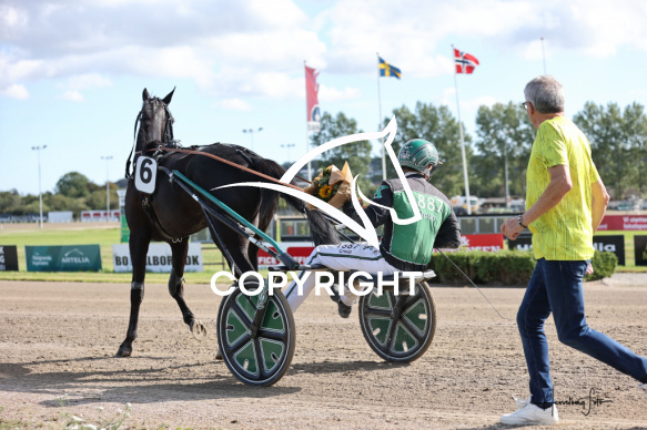 - Beskrivelse: MAZERATI M I med Nicklas Korfitsen vinder dagens 5 løb. Amerikanerløb Spar Nord Arena-Aalborg Væddeløbsbane d. 7/9-2025. Fotograf: Hesselborg Foto
