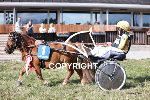 - Beskrivelse: Volka From med Christian Mortensen vinder dagens ponytrav. Spar Nord Arena-Aalborg Væddeløbsbane d. 7/9-2025. Fotograf: Hesselborg Foto
