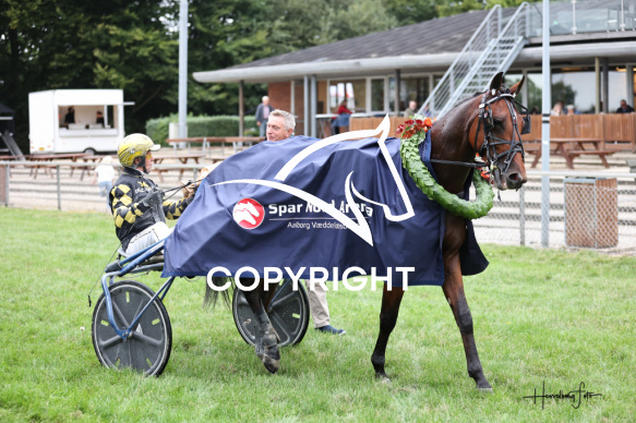 - Beskrivelse: MENZA med Birger Jørgensen vinder dagens 1 løb. KRAFFT Auktionsløb 2025 for hingste/vallakker. Spar Nord Arena-Aalborg Væddeløbsbane d. 19/9-2025. Fotograf: Hesselborg Foto