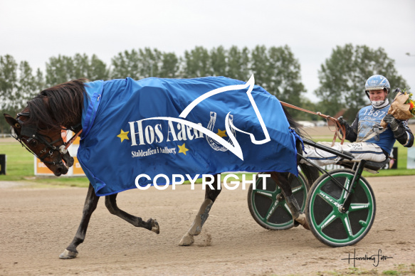 - Beskrivelse: JANE HALL med Mads Henriksen vinder dagens 5 løb. "HOS AAEN" præsenterer Hoppesprint - Amerikanerløb. Spar Nord Arena-Aalborg Væddeløbsbane d. 19/9-2025. Fotograf: Hesselborg Foto