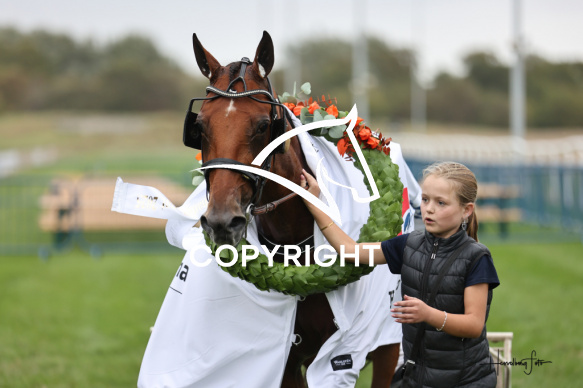 - Beskrivelse: KALEY D C med Michael Lønborg vinder dagens 6 løb. SPAR NORD Aalborg Hoppechampionat 2025. Spar Nord Arena-Aalborg Væddeløbsbane d. 19/9-2025. Fotograf: Hesselborg Foto