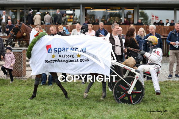 - Beskrivelse: KALEY D C med Michael Lønborg vinder dagens 6 løb. SPAR NORD Aalborg Hoppechampionat 2025. Spar Nord Arena-Aalborg Væddeløbsbane d. 19/9-2025. Fotograf: Hesselborg Foto