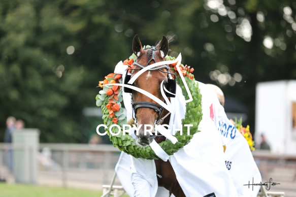 - Beskrivelse: KALEY D C med Michael Lønborg vinder dagens 6 løb. SPAR NORD Aalborg Hoppechampionat 2025. Spar Nord Arena-Aalborg Væddeløbsbane d. 19/9-2025. Fotograf: Hesselborg Foto