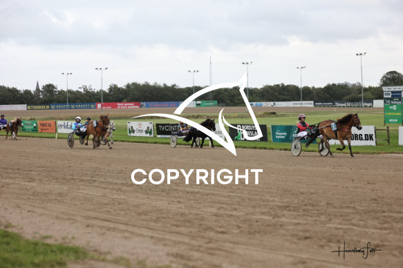 - Beskrivelse: Mørdrupgårds Carlo med Julie Nørgård Lauersen vinder dagens ponytrav. Spar Nord Arena-Aalborg Væddeløbsbane d. 19/9-2025. Fotograf: Hesselborg Foto