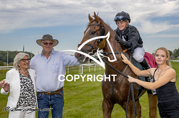 - Beskrivelse: GIANT STAR med Rebeca Stålhandske 2. løbs vinder på Klampenborg d. 2025-09-20. Photo: Burt Seeger.