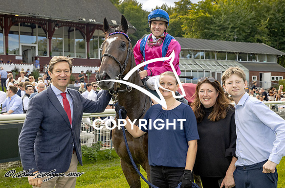 - Billede Beskrivelse: KING FERDINAND med Oliver Wilson 3. løbs vinder på Klampenborg d. 2025-09-20. Photo: Burt Seeger.