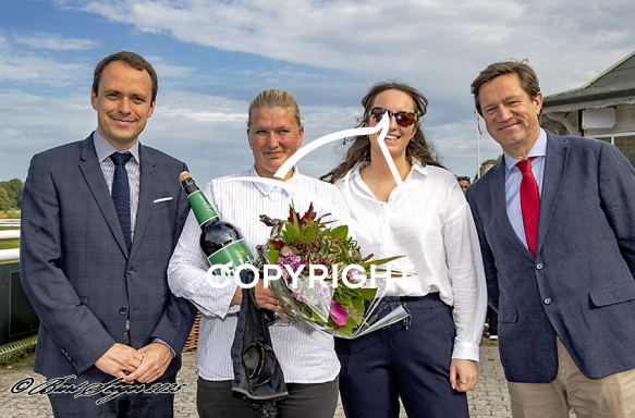 - Billede Beskrivelse: SISI med EVELINA RÖNNLUND 5. løbs vinder på Klampenborg d. 2025-09-20. Photo: Burt Seeger.