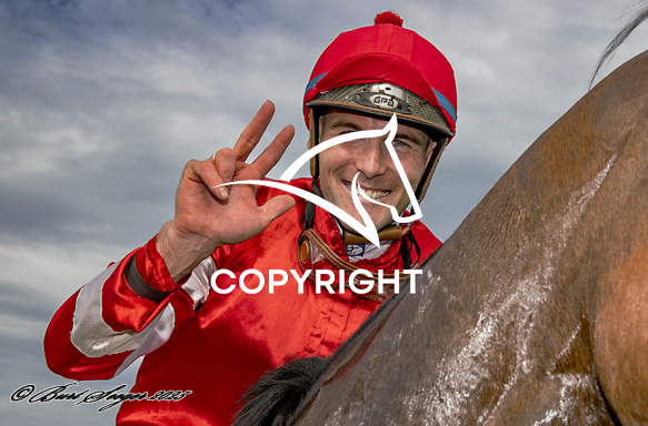 - Billede Beskrivelse: WOULD SHE med Oliver Wilson 6. løbs vinder på Klampenborg d. 2025-09-20. Photo: Burt Seeger.