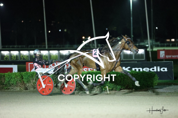 - Beskrivelse: LUNA LOVEGOOD med Victoria Fisker vinder dagens 10 og sidste løb. AALBORG HESTEEJERFORENING præsenterer Sigter mod Stjernerne, indl. afd. Spar Nord Arena-Aalborg Væddeløbsbane d. 20/9-2025. Fotograf: Hesselborg Foto
