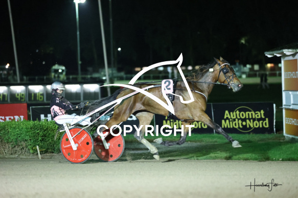 - Beskrivelse: LUNA LOVEGOOD med Victoria Fisker vinder dagens 10 og sidste løb. AALBORG HESTEEJERFORENING præsenterer Sigter mod Stjernerne, indl. afd. Spar Nord Arena-Aalborg Væddeløbsbane d. 20/9-2025. Fotograf: Hesselborg Foto