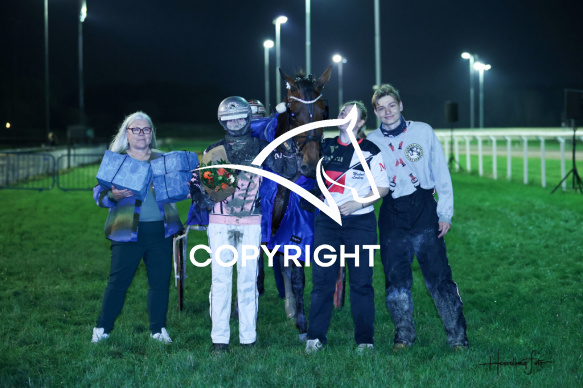 - Beskrivelse: LUNA LOVEGOOD med Victoria Fisker vinder dagens 10 og sidste løb. AALBORG HESTEEJERFORENING præsenterer Sigter mod Stjernerne, indl. afd. Spar Nord Arena-Aalborg Væddeløbsbane d. 20/9-2025. Fotograf: Hesselborg Foto