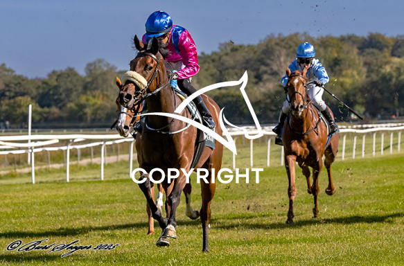 - Beskrivelse: LADY MEDINA med Per-Anders Gråberg 1. løbs vinder på Klampenborg d. 2025-09-27. Photo: Burt Seeger.