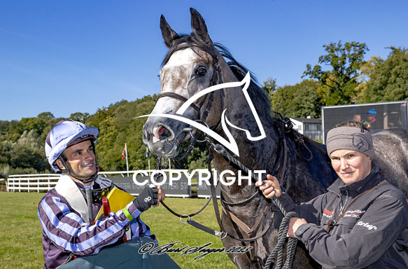 - Beskrivelse: NOBLE GREY med Dayversom De Barros 2. i 1. løb på Klampenborg d. 2025-09-27. Photo: Burt Seeger.