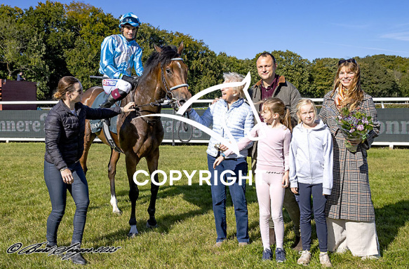 - Beskrivelse: MY FRIEND med Dayversom De Barros 4. løbs vinder på Klampenborg d. 2025-09-27. Photo: Burt Seeger.