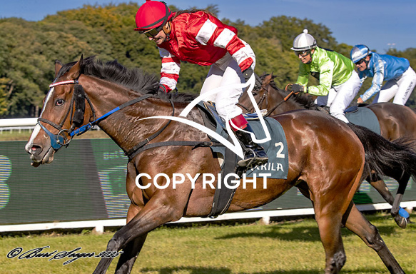 - Billede Beskrivelse: WOULD SHE med Laura Vestergaard 6. løbs vinder på Klampenborg d. 2025-09-27. Photo: Burt Seeger.