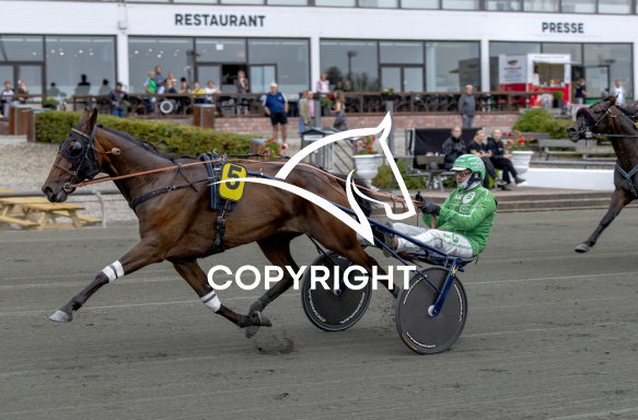 - Beskrivelse: RAKET BRODDE med Rene Kjær 1. løbs vinder, på Charlottenlund d. 2025-09-10. Photo: Burt Seeger.