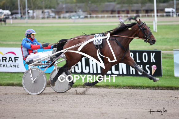 - Beskrivelse: GODRIC med Kristian Juul vinder dagens 5 løb. Amatørløb - Amerikanerløb Spar Nord Arena-Aalborg Væddeløbsbane d. 10/10-2025. Fotograf: Hesselborg Foto