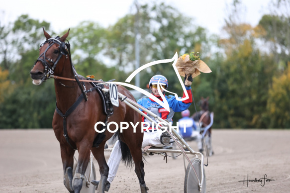 - Beskrivelse: GODRIC med Kristian Juul vinder dagens 5 løb. Amatørløb - Amerikanerløb Spar Nord Arena-Aalborg Væddeløbsbane d. 10/10-2025. Fotograf: Hesselborg Foto