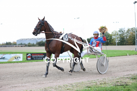 - Beskrivelse: GODRIC med Kristian Juul vinder dagens 5 løb. Amatørløb - Amerikanerløb Spar Nord Arena-Aalborg Væddeløbsbane d. 10/10-2025. Fotograf: Hesselborg Foto