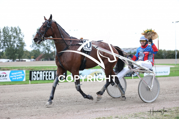- Beskrivelse: GODRIC med Kristian Juul vinder dagens 5 løb. Amatørløb - Amerikanerløb Spar Nord Arena-Aalborg Væddeløbsbane d. 10/10-2025. Fotograf: Hesselborg Foto