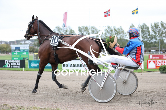 - Beskrivelse: GODRIC med Kristian Juul vinder dagens 5 løb. Amatørløb - Amerikanerløb Spar Nord Arena-Aalborg Væddeløbsbane d. 10/10-2025. Fotograf: Hesselborg Foto