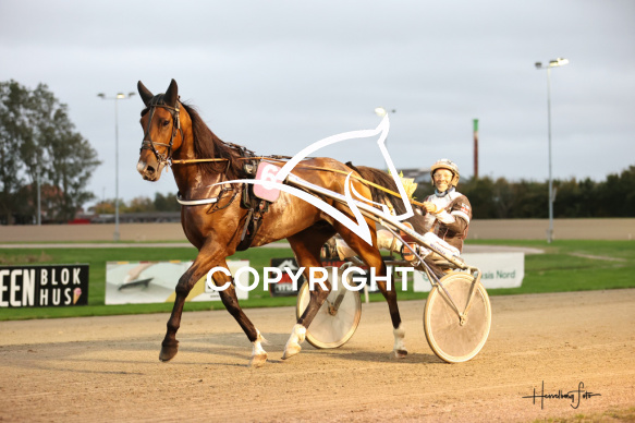 - Beskrivelse: LOVE ME TENDER DAY med Kaj Vestergaard vinder dagens 8 løb. Spar Nord Arena-Aalborg Væddeløbsbane d. 10/10-2025. Fotograf: Hesselborg Foto