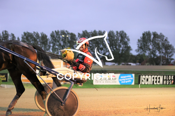 - Beskrivelse: HERBIE GIN med Michael Skærbæk vinder dagens 9 og sidste løb. Formløb Amatør/Jockey Spar Nord Arena-Aalborg Væddeløbsbane d. 10/10-2025. Fotograf: Hesselborg Foto