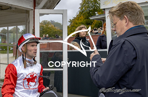 - Beskrivelse: KING TO BE med Oliver Wilson 1. løbs vinder på Klampenborg d. 2025-10-11. Photo: Burt Seeger.